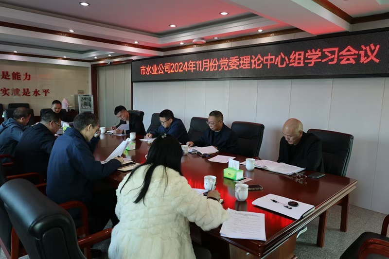 11月27下午,市水業(yè)公司黨委書記、董事長朱滿四主持召開黨委理論中心組學(xué)習(xí)會(huì)議,聯(lián)系領(lǐng)導(dǎo)、市國資委黨委委員、副主任劉登科旁聽指導(dǎo),公司領(lǐng)導(dǎo)參加。