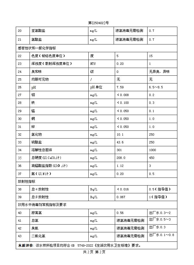 2025年4月一水廠出廠水水質公告